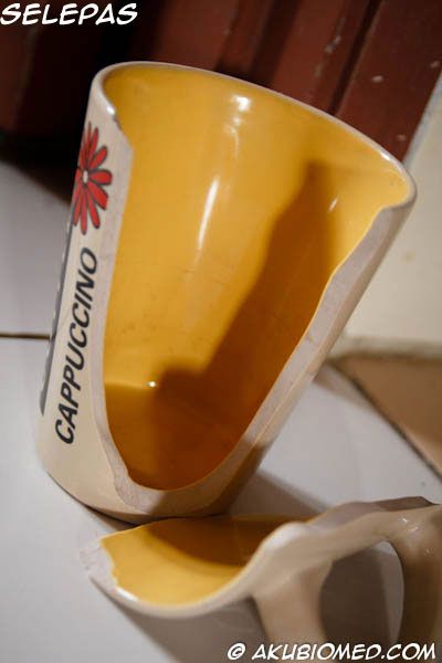 apa sudah jadi ni bro? sayangnya cawan comel dah pecah macam ni
